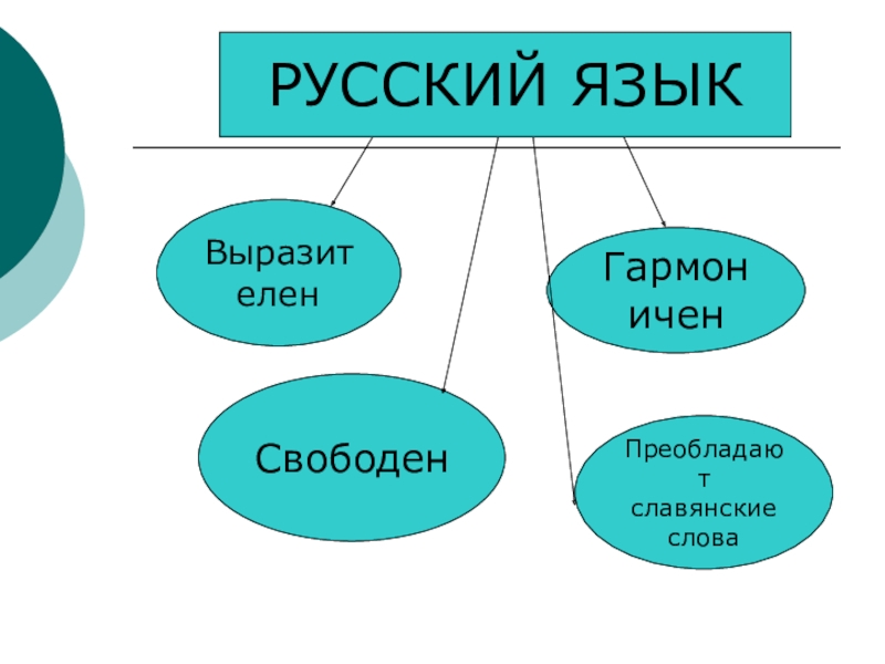 РУССКИЙ ЯЗЫКРУССКИЙ ЯЗЫКВыразителенГармониченСвободенПреобладают славянские слова