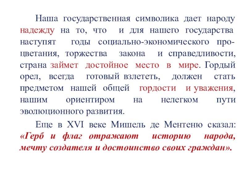 Слайд 36 Наша государственная символика дает народу надежду на то, что