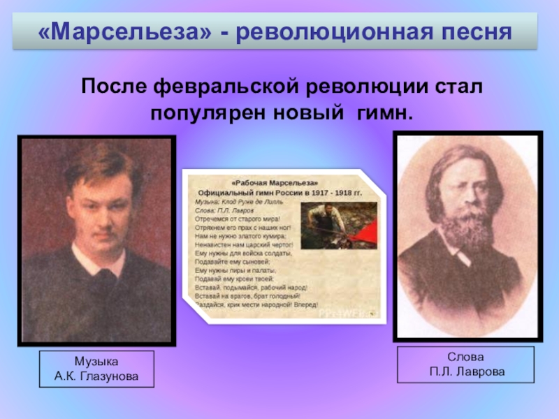 Слайд 43«Интернационал» впервые прозвучал в январе 1918 г. и оставался гимном РСФСР,