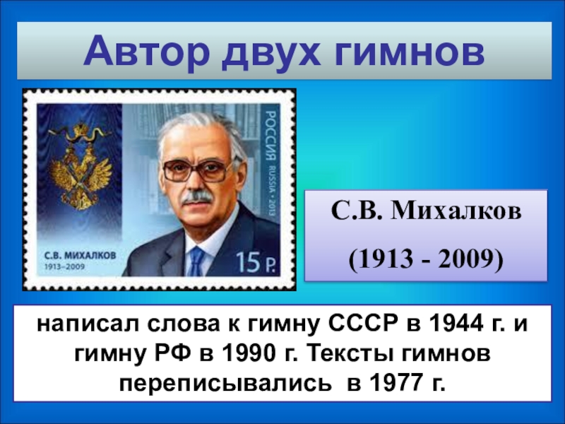 гимну РФ в 1990 г. Тексты гимнов переписывались в 1977 г.