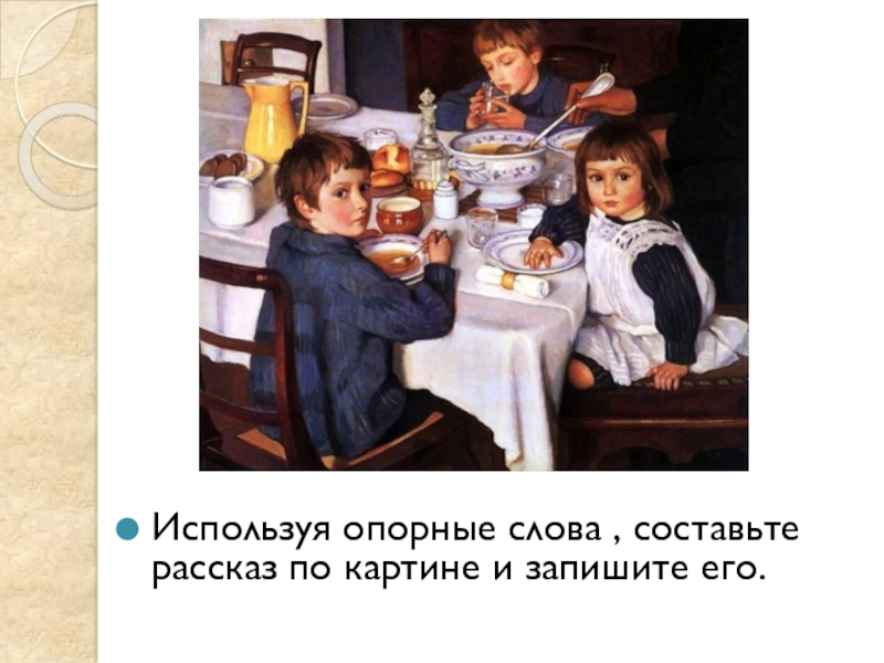 Презентация, доклад к уроку русского языка Составление рассказа по картине З.Е.Серебряковой За обедом. 2 класс. УМК Школа России