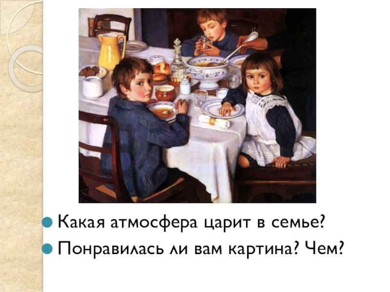 Какая атмосфера царит в семье?Понравилась ли вам картина? Чем?