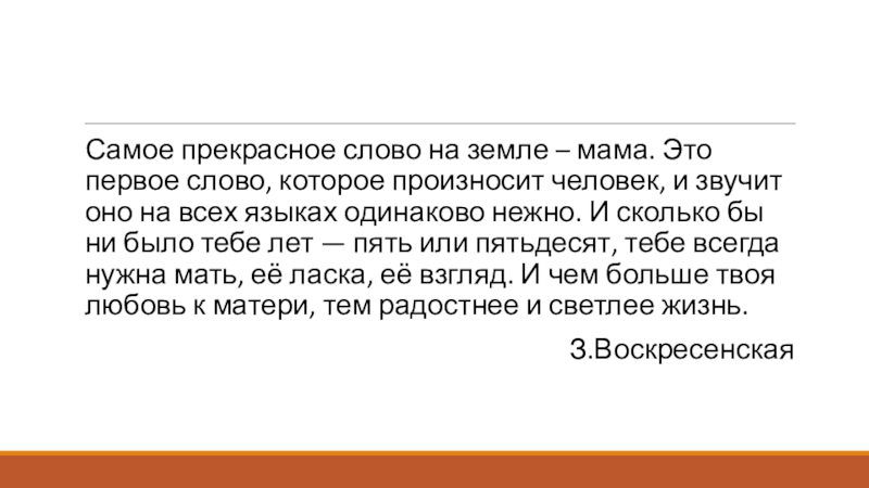 Слайд 9Самое прекрасное слово на земле – мама. Это первое слово, которое