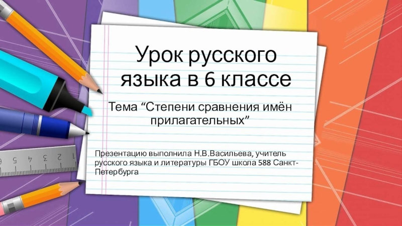 Н.В.Васильева, учитель русского языка и литературы ГБОУ школа 588 Санкт-Петербурга