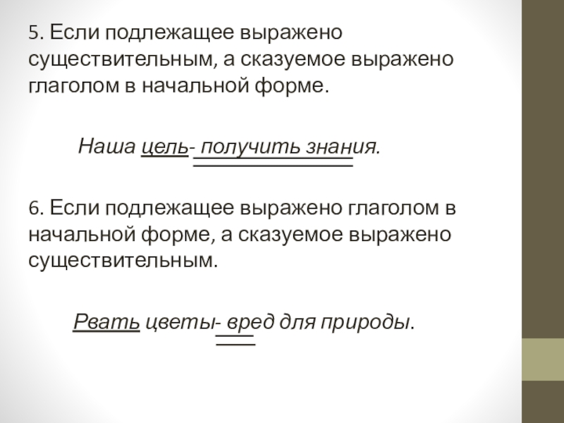 6. Если подлежащее выражено глаголом в начальной форме, а сказуемое выражено существительным.