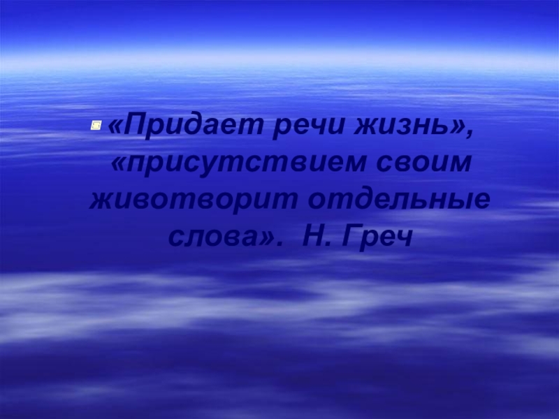 «Придает речи жизнь», «присутствием своим животворит отдельные слова». Н. Греч