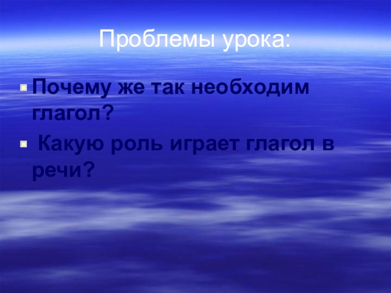 Проблемы урока:Почему же так необходим глагол? Какую роль играет глагол в речи?