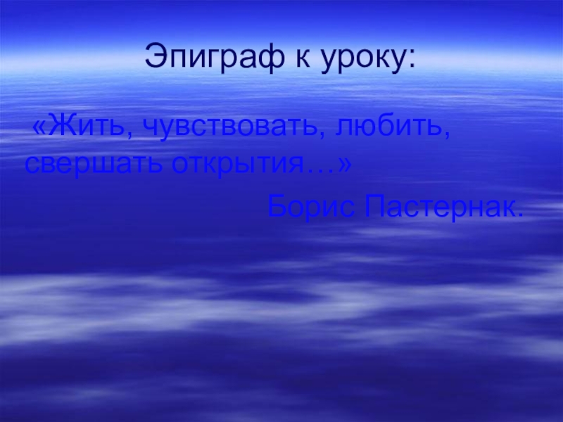 Эпиграф к уроку: «Жить, чувствовать, любить, свершать открытия…»