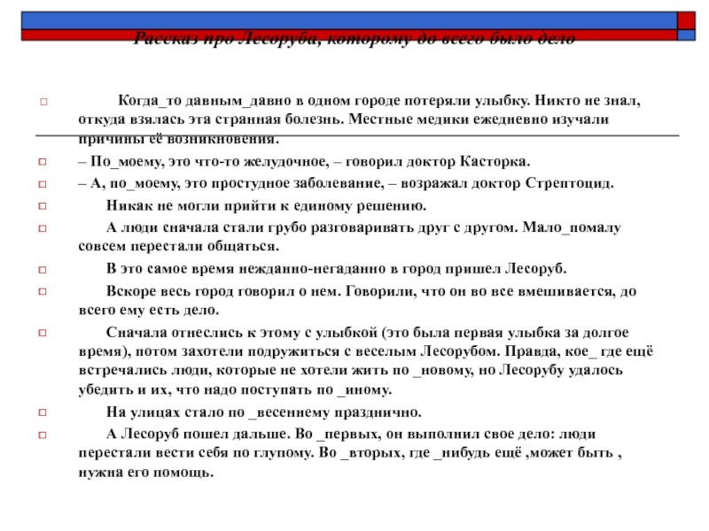 Слайд 21Рассказ про Лесоруба, которому до всего было дело