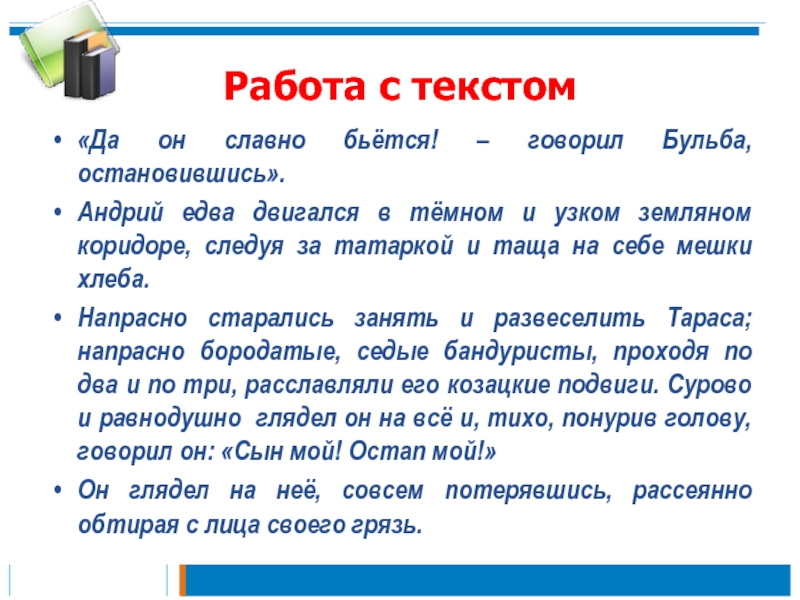 «Да он славно бьётся! – говорил Бульба, остановившись».