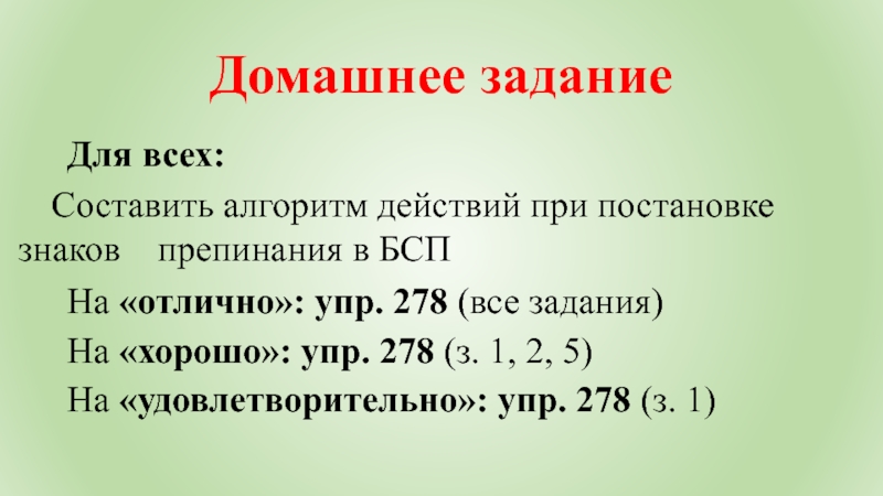 Составить алгоритм действий при постановке знаков препинания в БСП