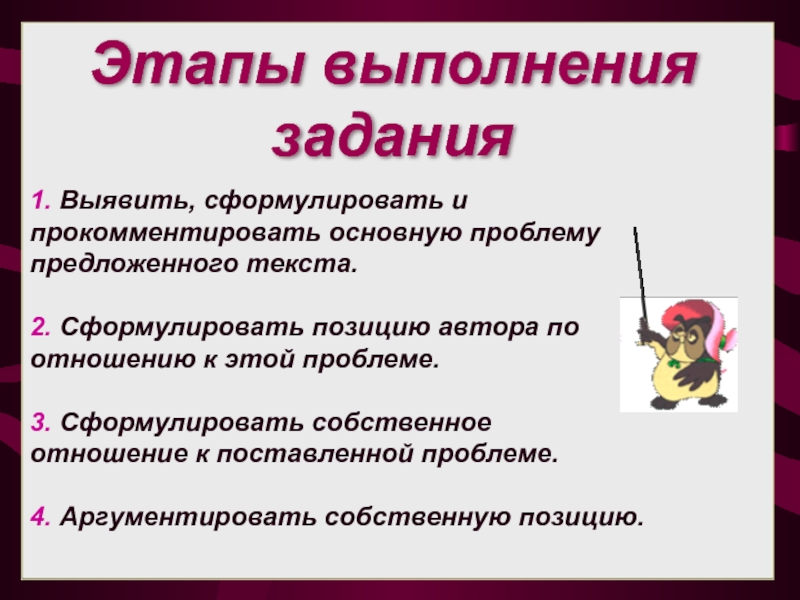 заявлять о своём отношении к поднятой им проблеме прямо, словесно, полно выразив его