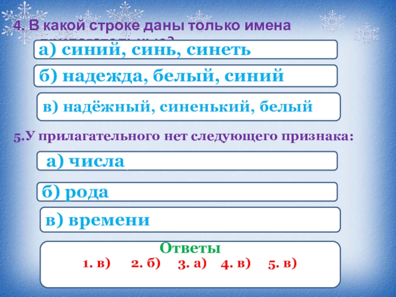 1. в) 2. б) 3. а) 4. в) 5. в)