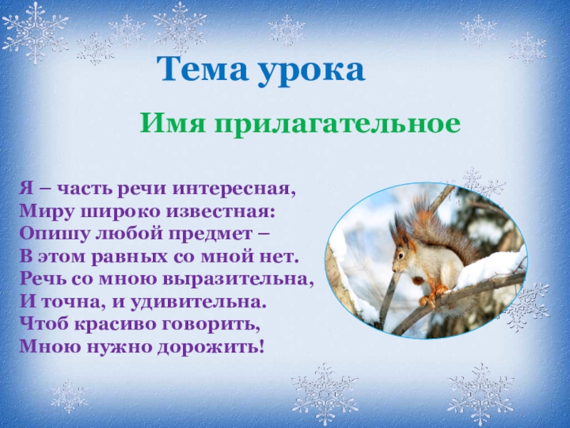 «Имя прилагательное как часть речи. Роль имен прилагательных».