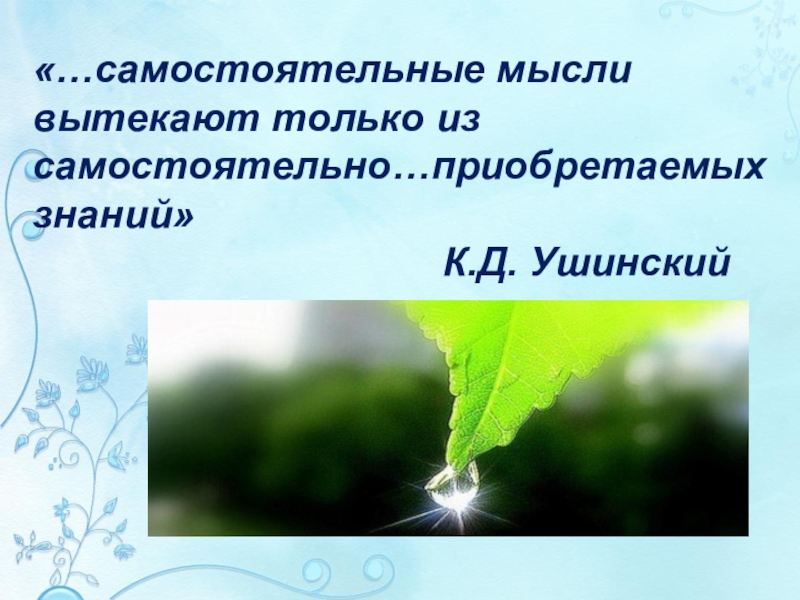 (32)Представляю себе человека в безграничной, бестравной пустыне, какой может оказаться после какой-нибудь космической или не космической катастрофы наша Земля, обнаружившего, что на обугленной поверхности планеты он — единственный зелёный росточек, пробивающийся из мрака к солнцу.
