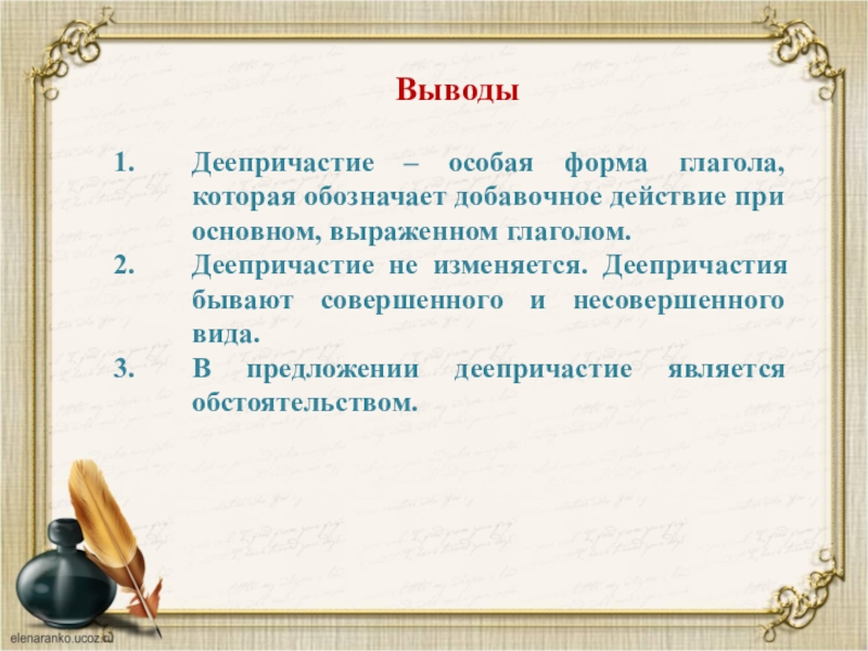 Деепричастие – особая форма глагола, которая обозначает добавочное действие