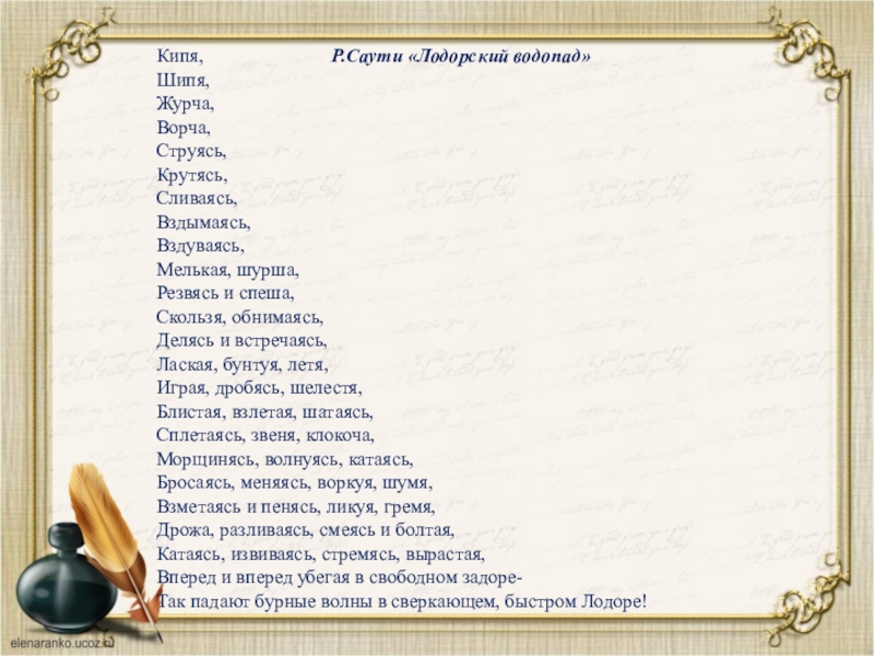 Так падают бурные волны в сверкающем, быстром Лодоре!