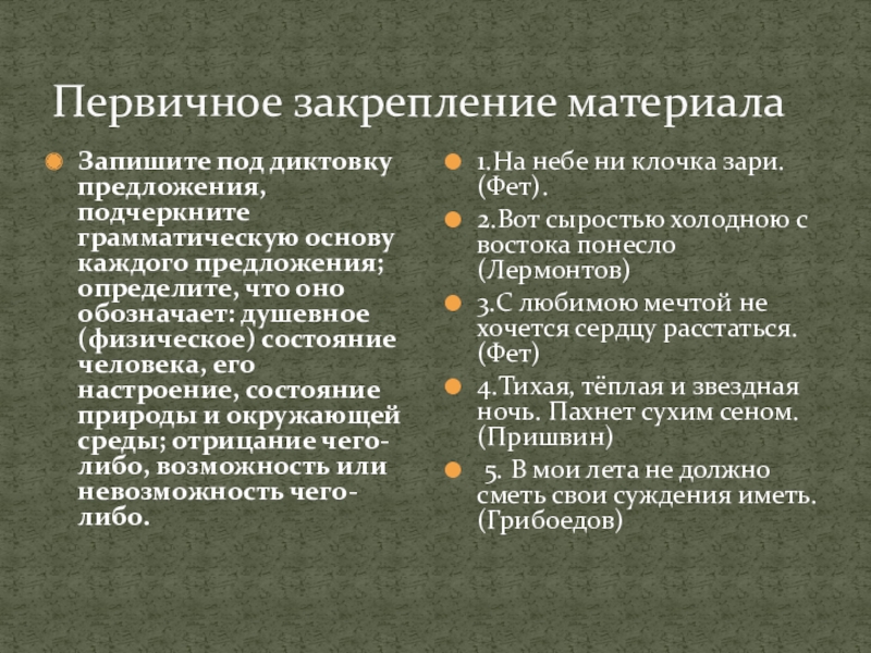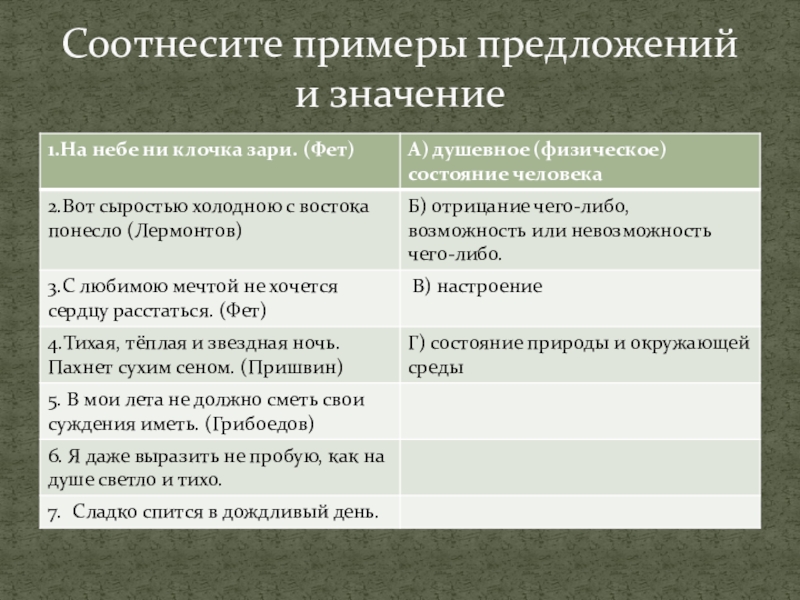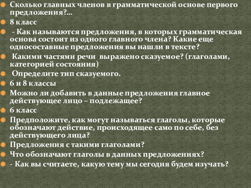 - Какую ассоциацию вызывают у вас безличные глаголы и безличные предложения?