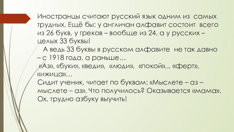 А ведь 33 буквы в русском алфавите не так давно – с 1918 года, а раньше…