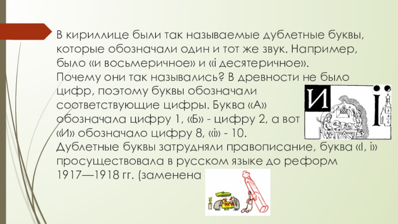 Слайд 18В кириллице были так называемые дублетные буквы, которые обозначали один и