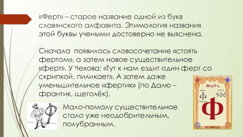 Слайд 23«Ферт» – старое название одной из букв славянского алфавита. Этимология названия