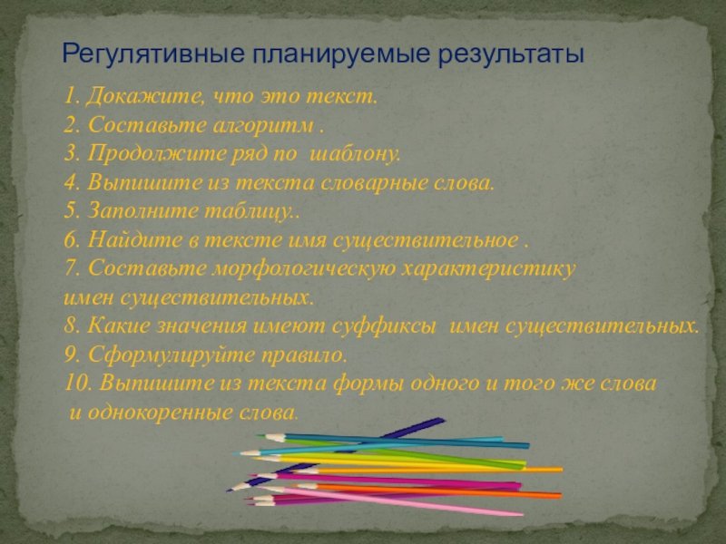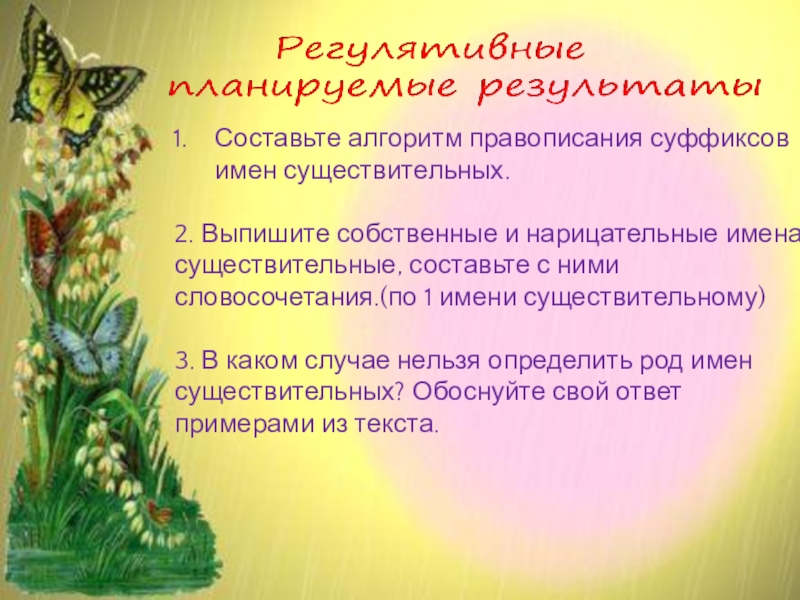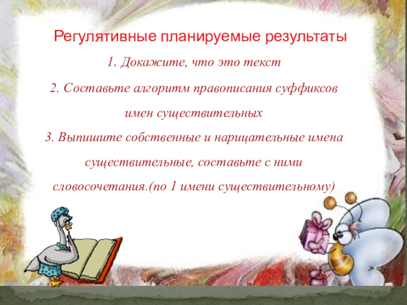 Слайд 12Составьте алгоритм правописания суффиксов имен существительных.