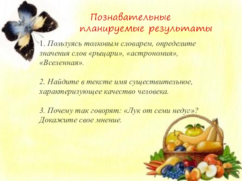 Слайд 171. Пользуясь толковым словарем, определите значения слов «рыцари», «астрономия», «Вселенная».
