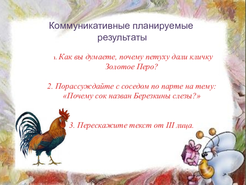 Слайд 1421. Как вы думаете, почему петуху дали кличку Золотое Перо?