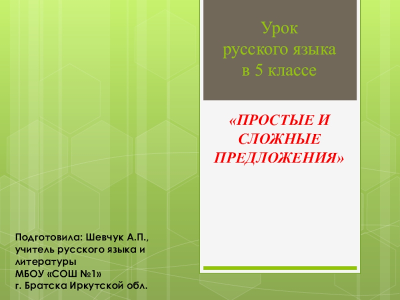 «ПРОСТЫЕ И СЛОЖНЫЕ ПРЕДЛОЖЕНИЯ»