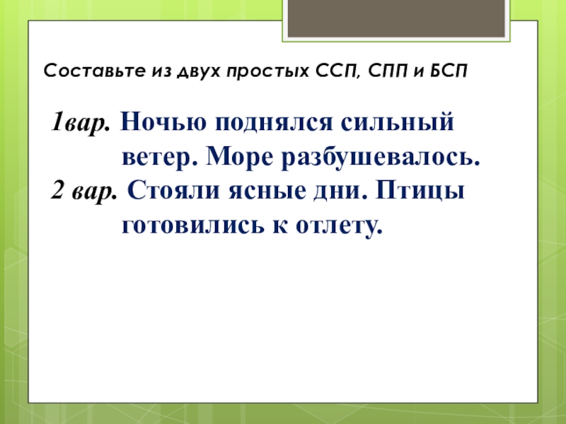 Измените (устно) последнее предложение так, чтобы получилось СПП и БСП