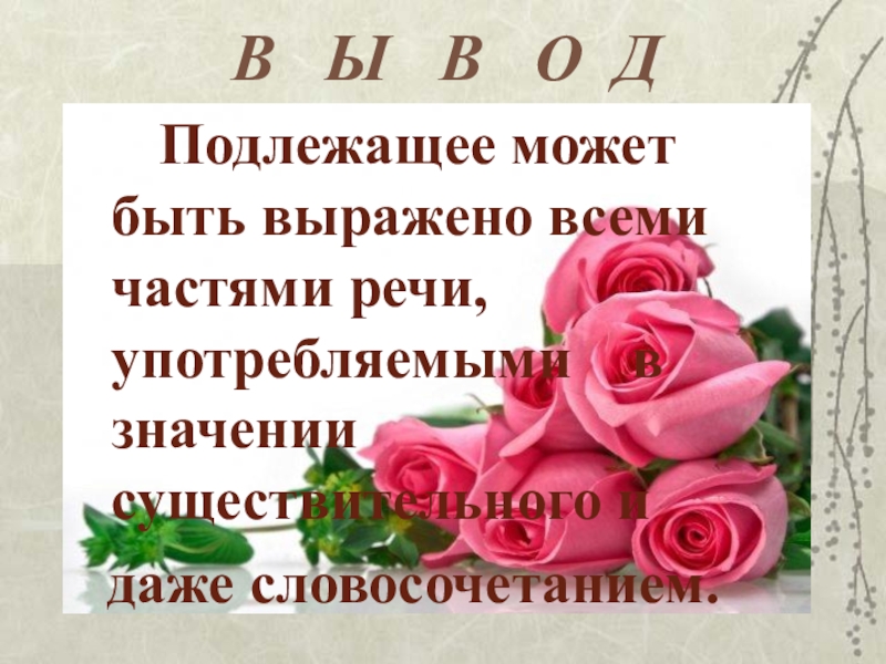В  Ы  В  О Д    Подлежащее может быть выражено всеми частями