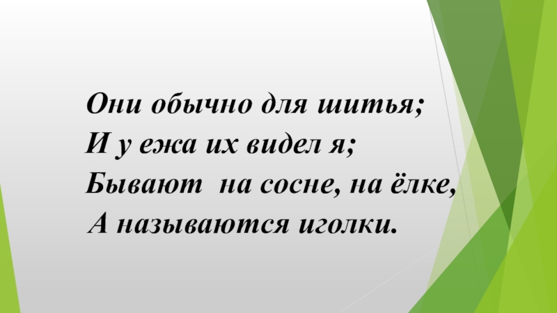 Они обычно для шитья;И у ежа их видел я;Бывают на сосне, на ёлке,  А называются иголки.