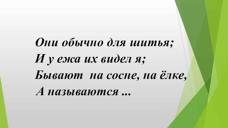 Они обычно для шитья;И у ежа их видел я;Бывают на сосне, на ёлке,  А называются ...