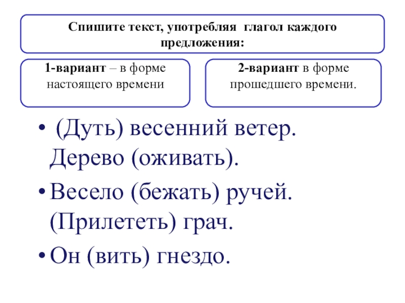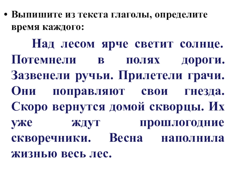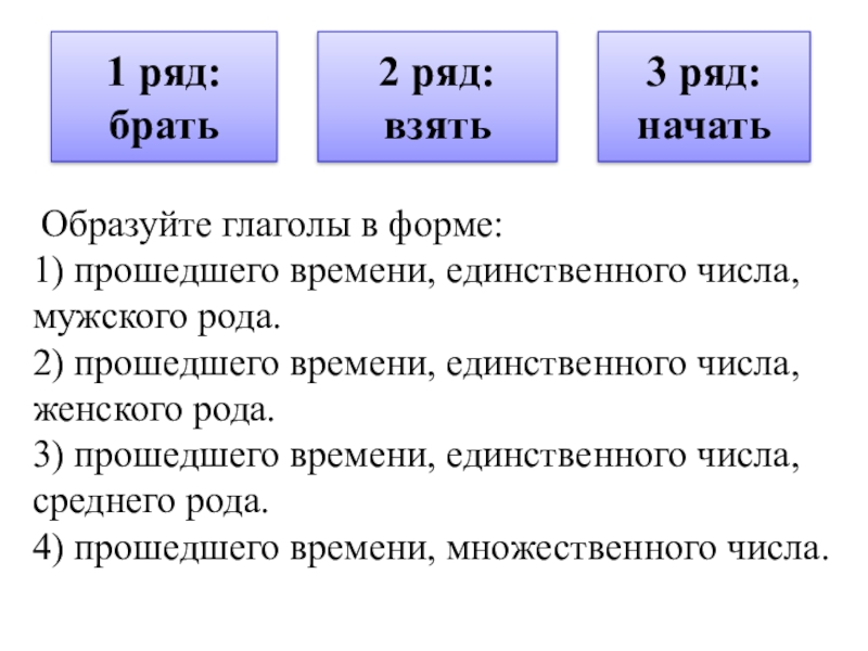 Составить по одному предложению с глаголом в прошедшем времени, в настоящем времени, в будущем времени.