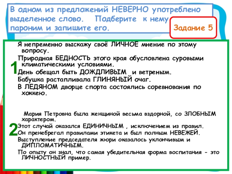 В одном из предложений НЕВЕРНО употреблено выделенное слово. Подберите к нему