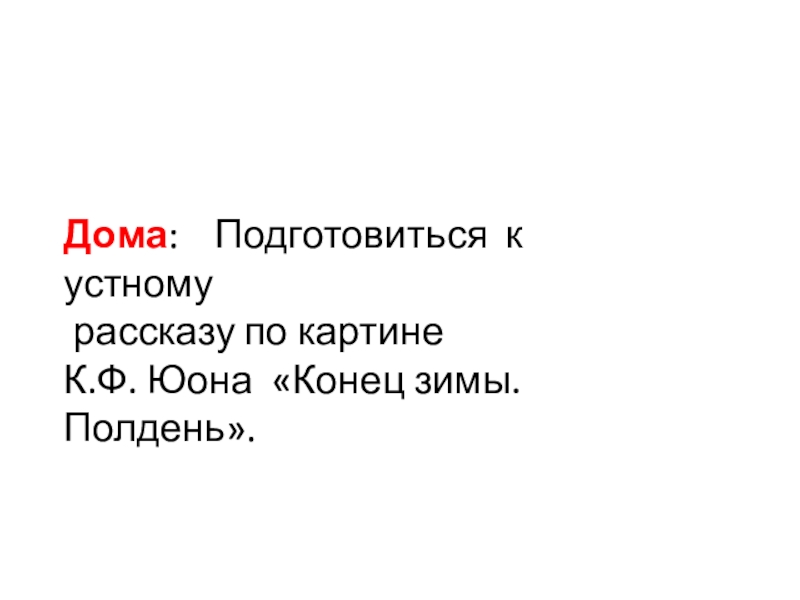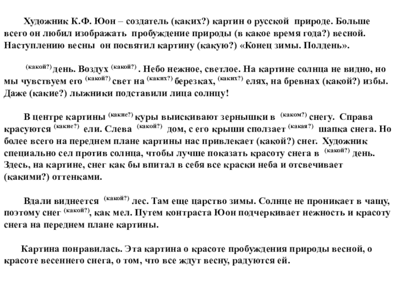 Подготовка к устному творческому диктанту по картине К.Ф.Юона «Конец зимы. Полдень»