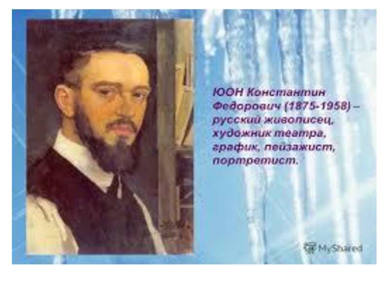 Слайд 13Константин Федорович Юон (1875-1958) – художник-пейзажист, писал светлые, добрые пейзажи.