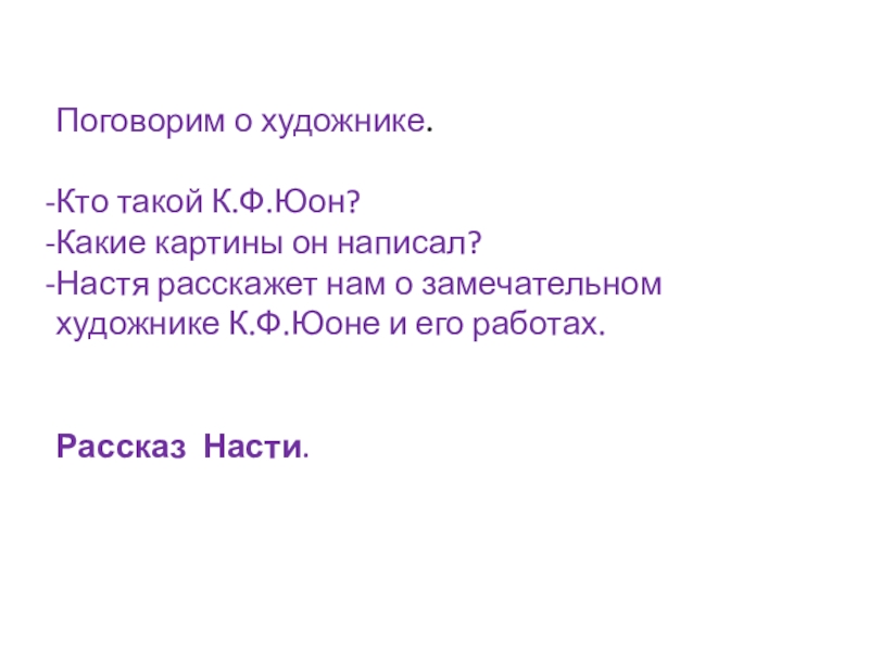 расскажет нам о замечательном художнике К.Ф.Юоне и его работах.