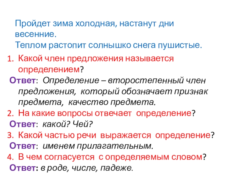 На какие вопросы отвечает определение?