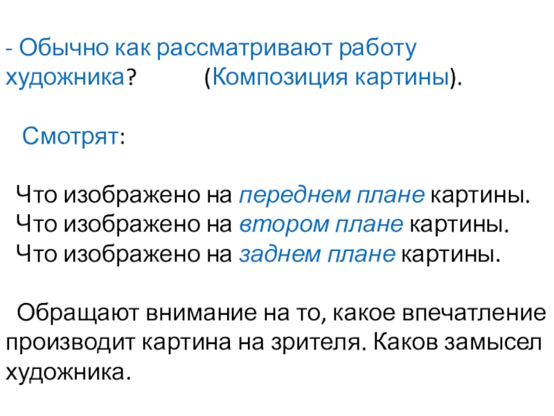 - Обычно как рассматривают работу художника?