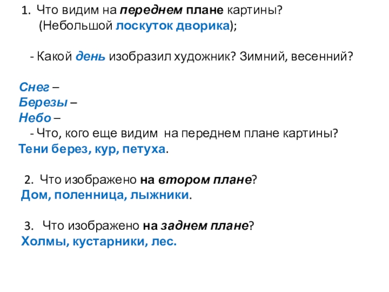 Слайд 19 1. Что видим на переднем плане картины?