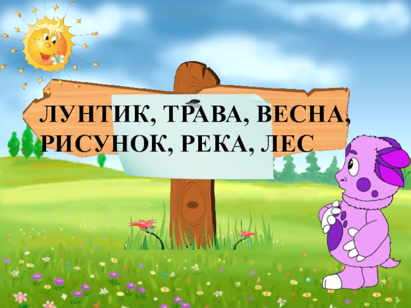 Слайд 12Лунтик, трава, весна, рисунок, река, лес