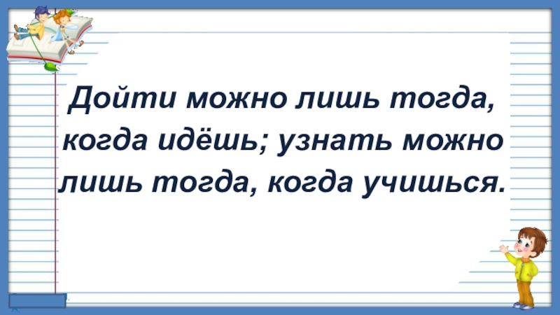 Дойти можно лишь тогда,когда идёшь; узнать можнолишь тогда, когда учишься.
