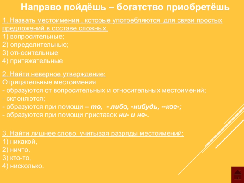 3. Найти лишнее слово, учитывая разряды местоимений: