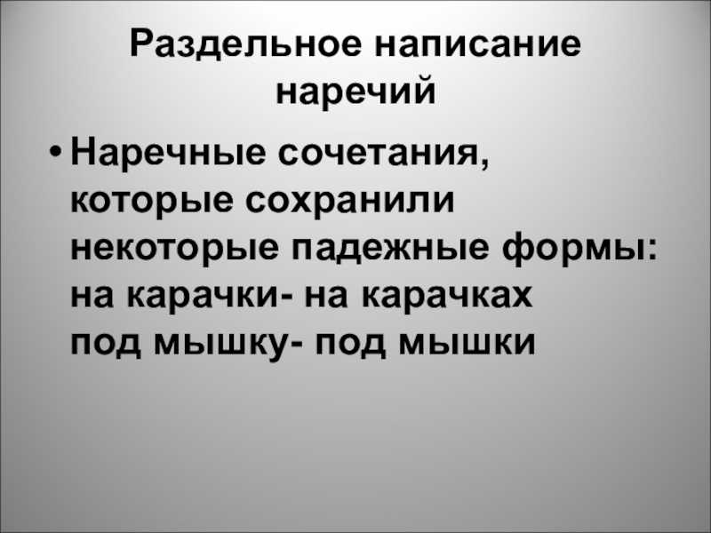 Наречные сочетания, которые сохранили некоторые падежные формы: