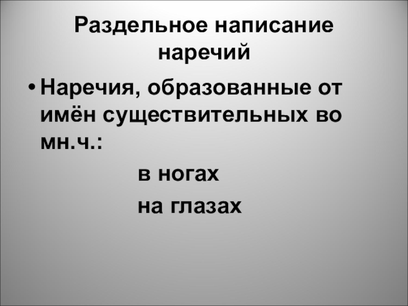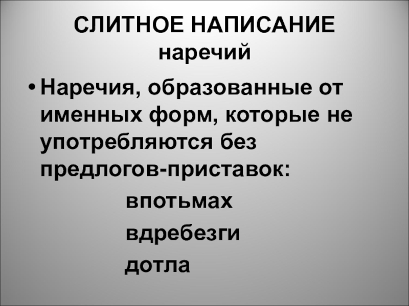 Слайд 30СЛИТНОЕ НАПИСАНИЕ наречий