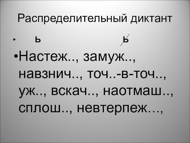 Настеж.., замуж.., навзнич.., точ..-в-точ.., уж.., вскач.., наотмаш.., сплош.., невтерпеж…,