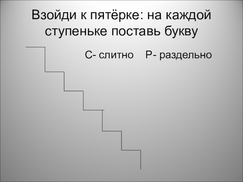 Слайд 8Взойди к пятёрке: на каждой ступеньке поставь букву