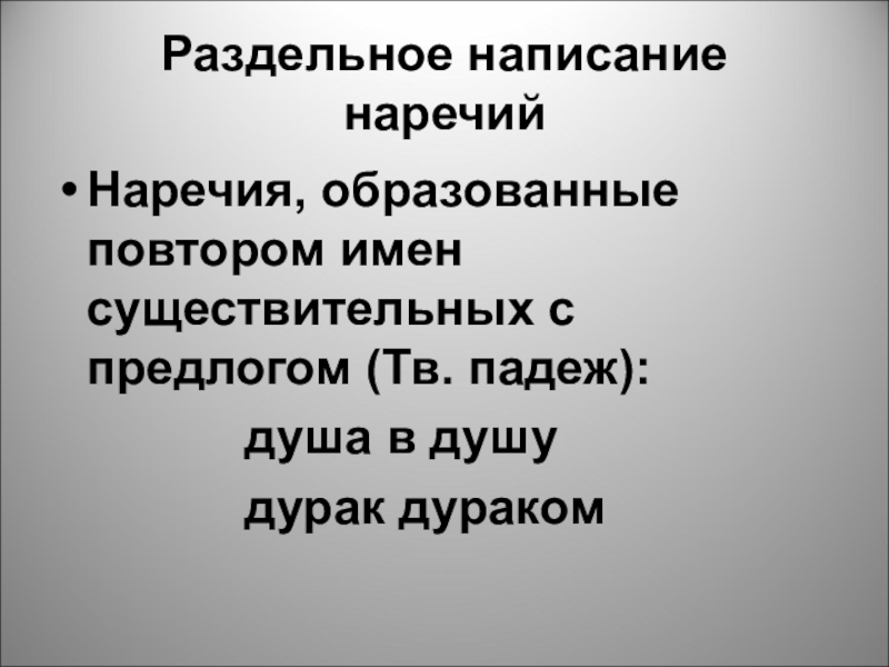 Наречия, образованные повтором имен существительных с предлогом (Тв. падеж):