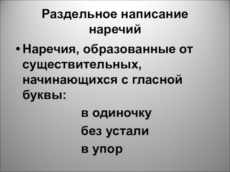 Наречия, образованные от существительных, начинающихся с гласной буквы:
